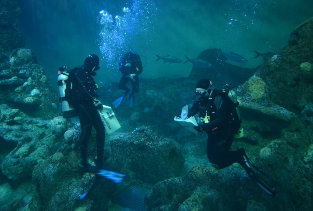 Mavis’ Rescue Hideaway features Clearwater Marine Aquarium’s resident sea turtles, including Harold. Divers were doing a scuba presentation during our visit.