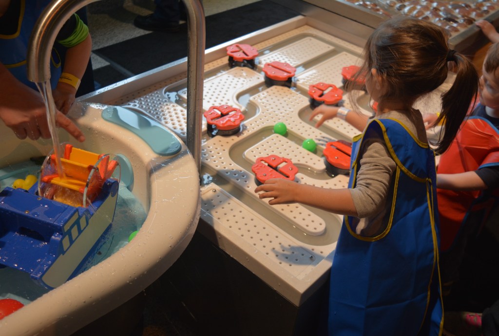 My boys really enjoyed the Waterplay exhibit on our previous visits. Honestly, I judged other museum waterplay exhibits against this one for years. Previously, full length rain ponchos and crocs were available for kids to use while exploring in the water. This time, only smocks were available, and almost all the other kids had changed into swimming attire or had stripped down to their underwear, and it seemed more like a spray park than it had been before. An ideal day at the museum for me does not involve hauling swimsuits and towels, and even my three year old would not be comfortable wearing only panties in public. My kids were hesitant because they did not want to get soaked, so this exhibit definitely lost some of its luster this time around. While the snow table was unique, we all agreed that the Wonder Lab at the Children’s Museum of Cleveland is now our waterplay gold standard.