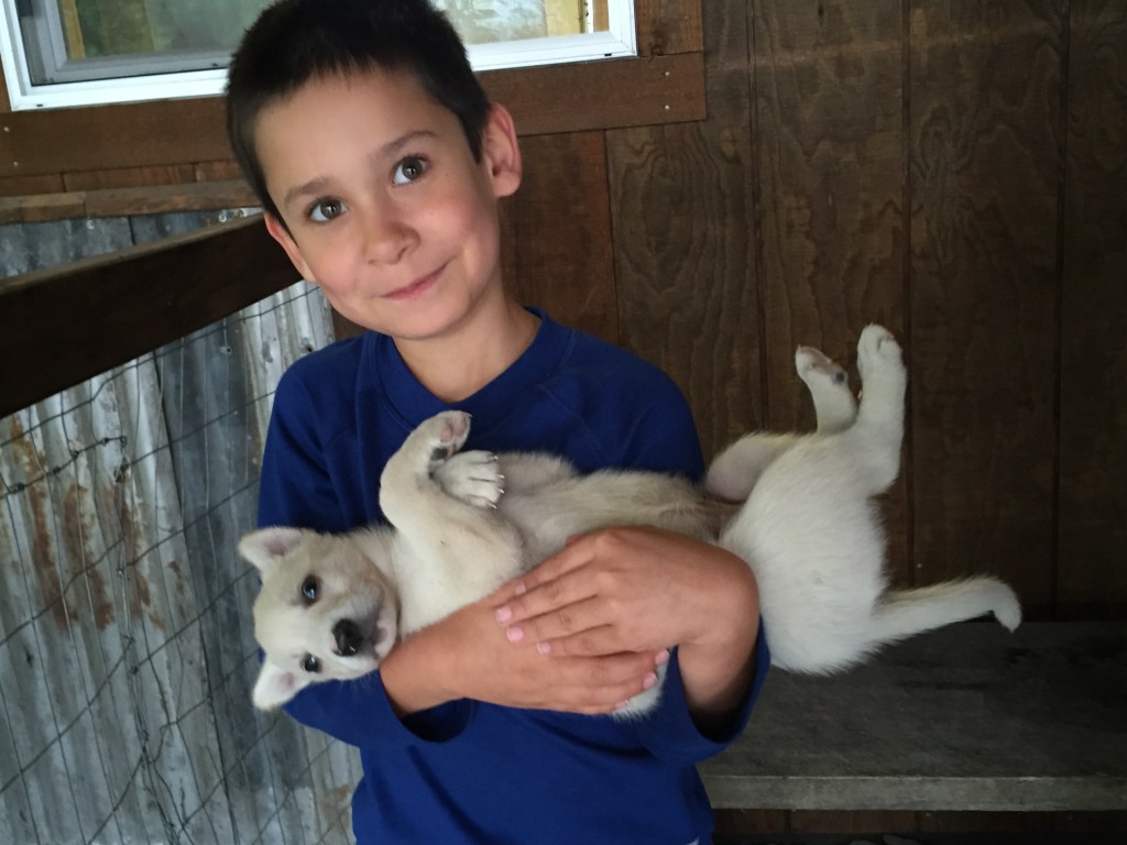 We went to this place where we got to ride on these little tiny cart buggy things. Since it wasn’t snowing, we did not have sleds. In front, there were huskies pulling us. My brother fell asleep halfway through the ride. What was really fun about it was that you actually get to pet and hold a baby husky and see the dogs up close in real life, instead of in a movie, like Balto.